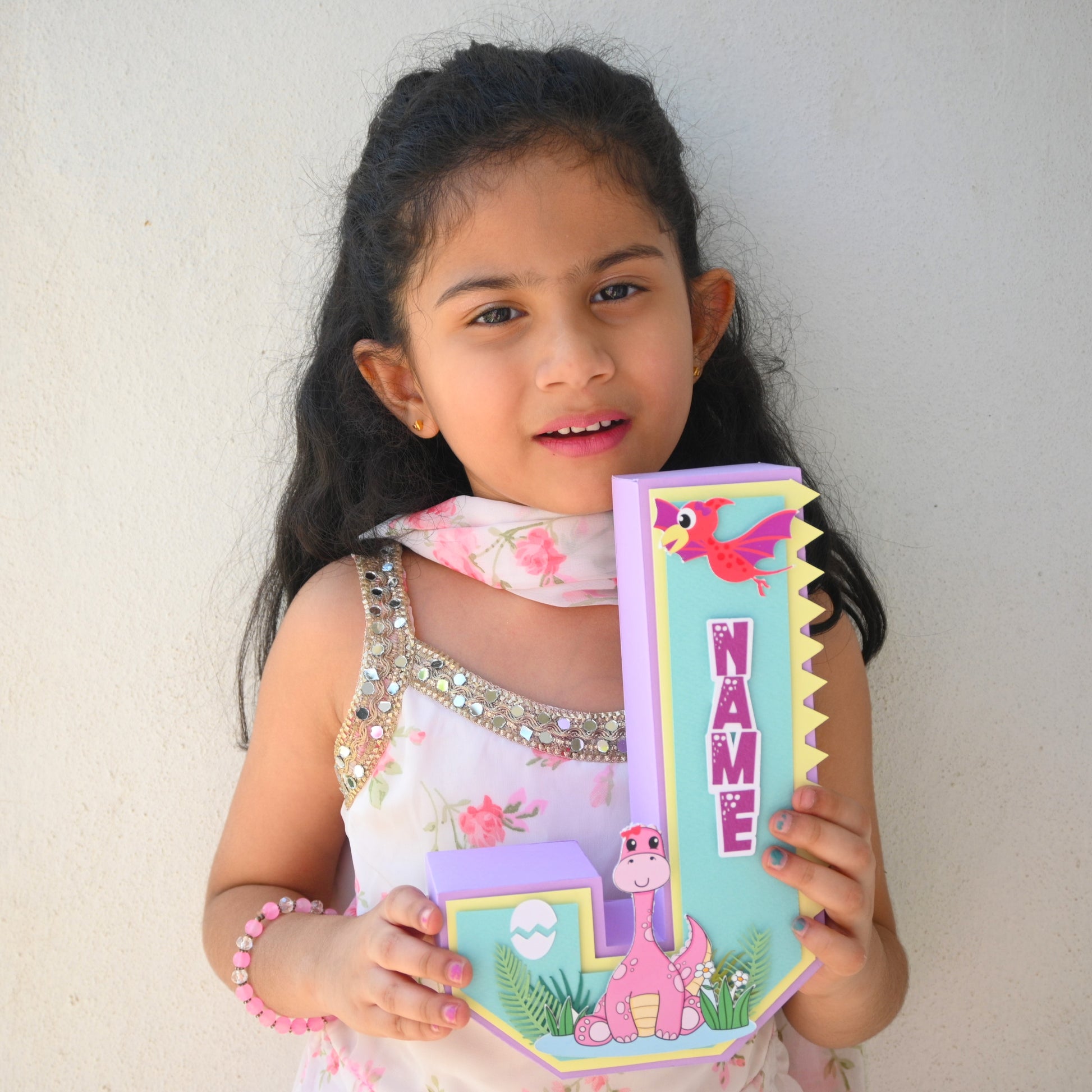 Dino Girl 3D Letter Birthday Decoration - Customizable with Name or Age