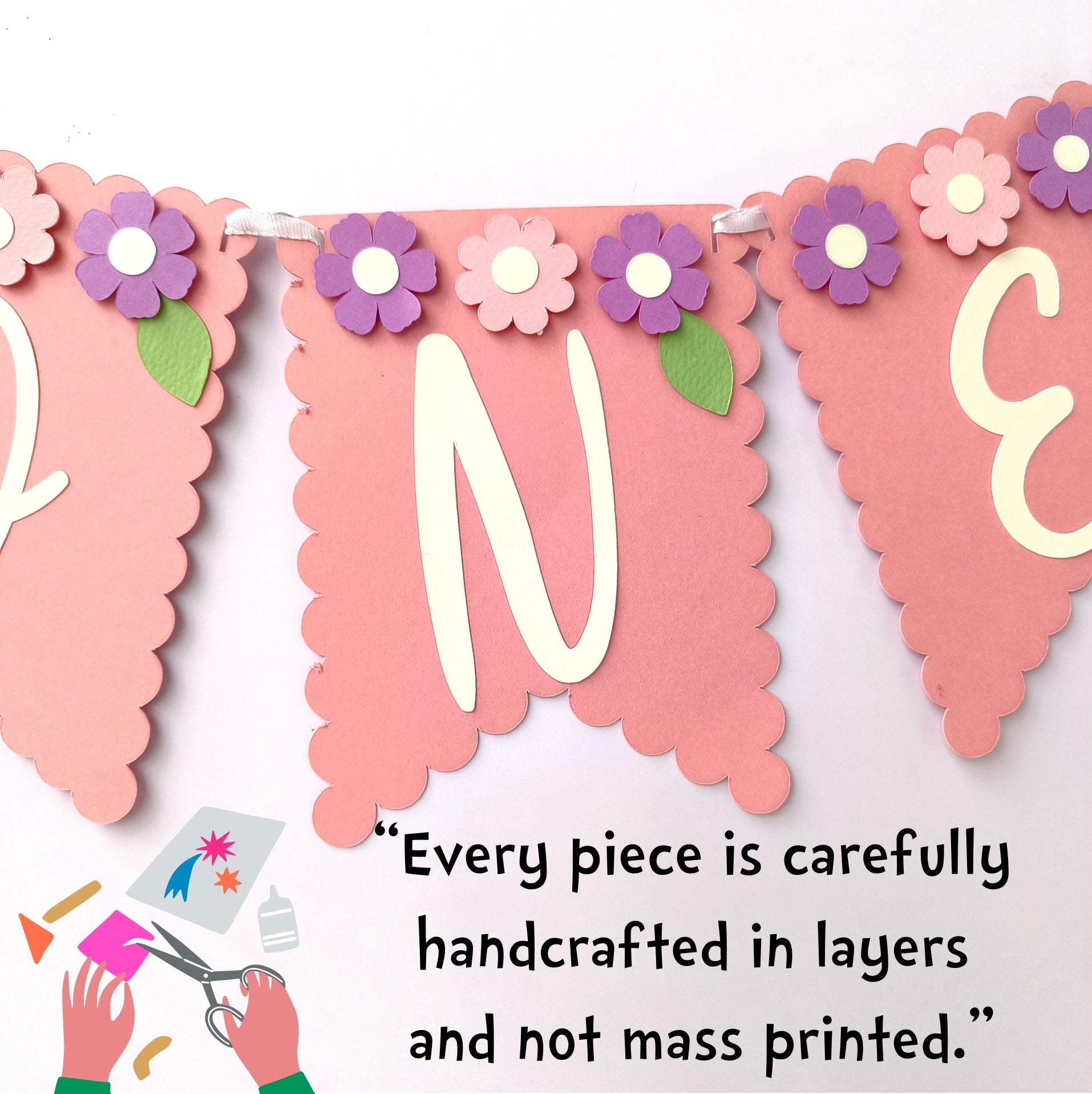 Flower High Chair Banner & Cake Topper Set - Handcrafted Party Decoration