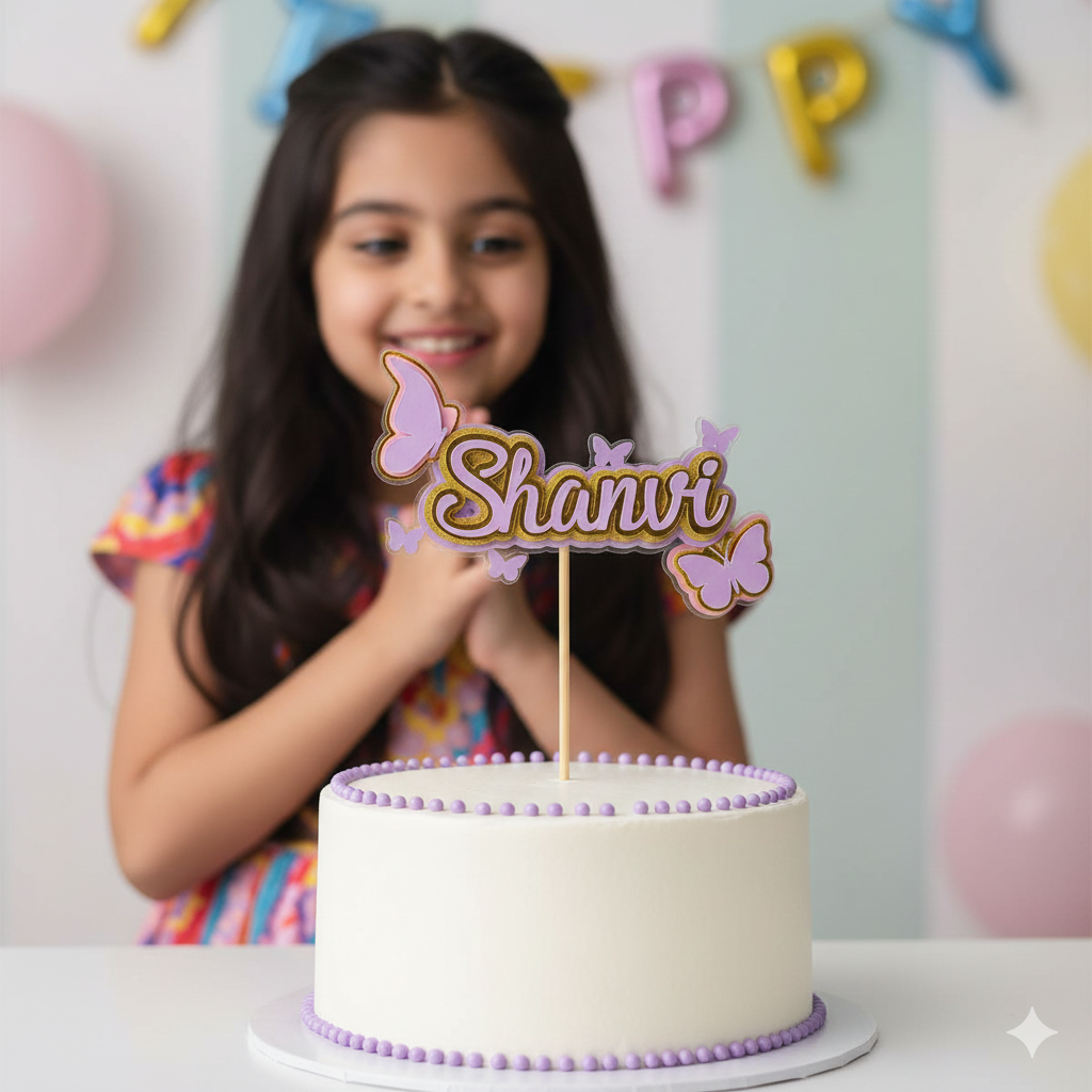 Flutter into celebration with our beautiful handcrafted butterfly name topper! Perfect for adding a touch of elegance and whimsy to your party, personalized with your child's name.