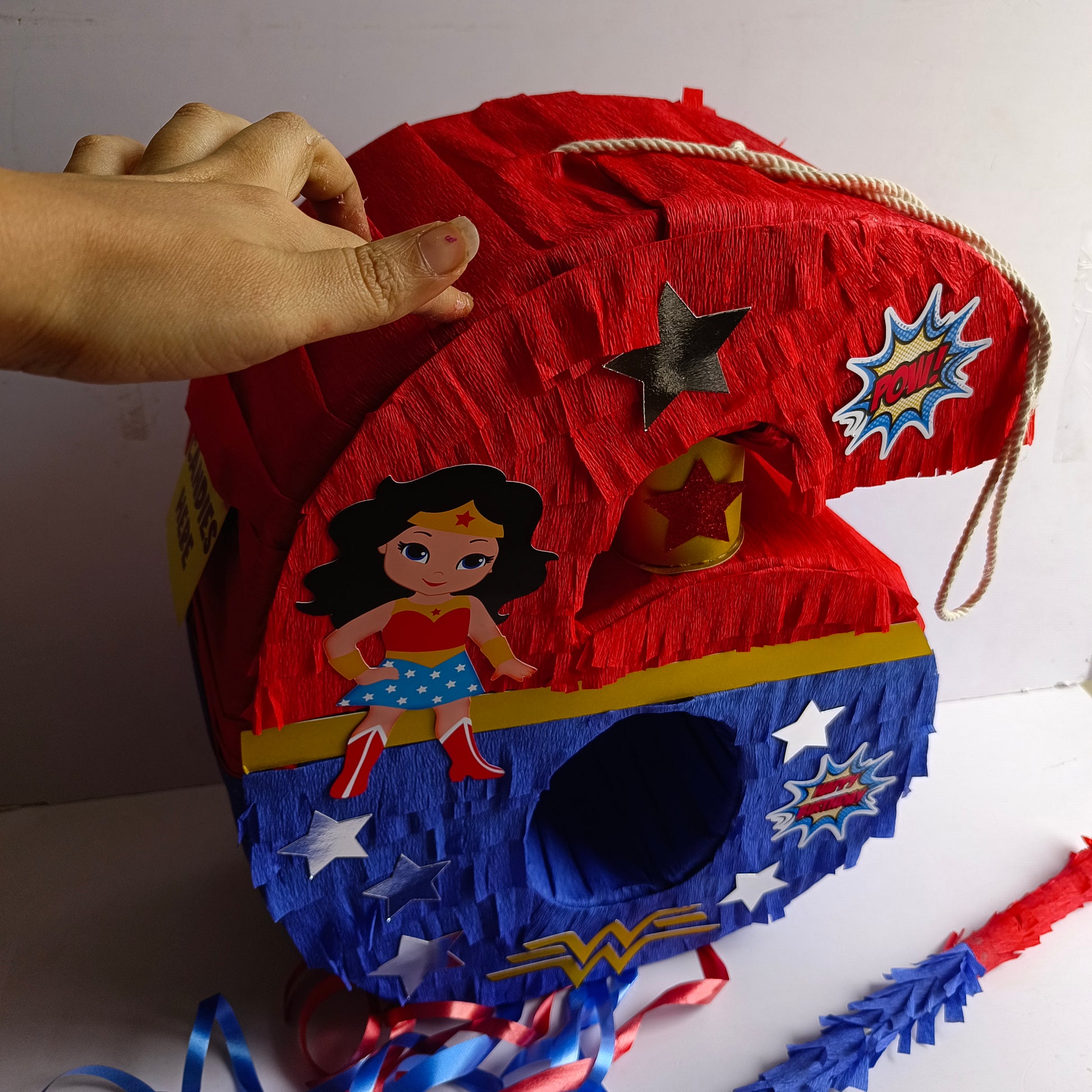 Celebrate with girl power! Our handcrafted Wonder Woman piñata brings the iconic superhero to life at your party.