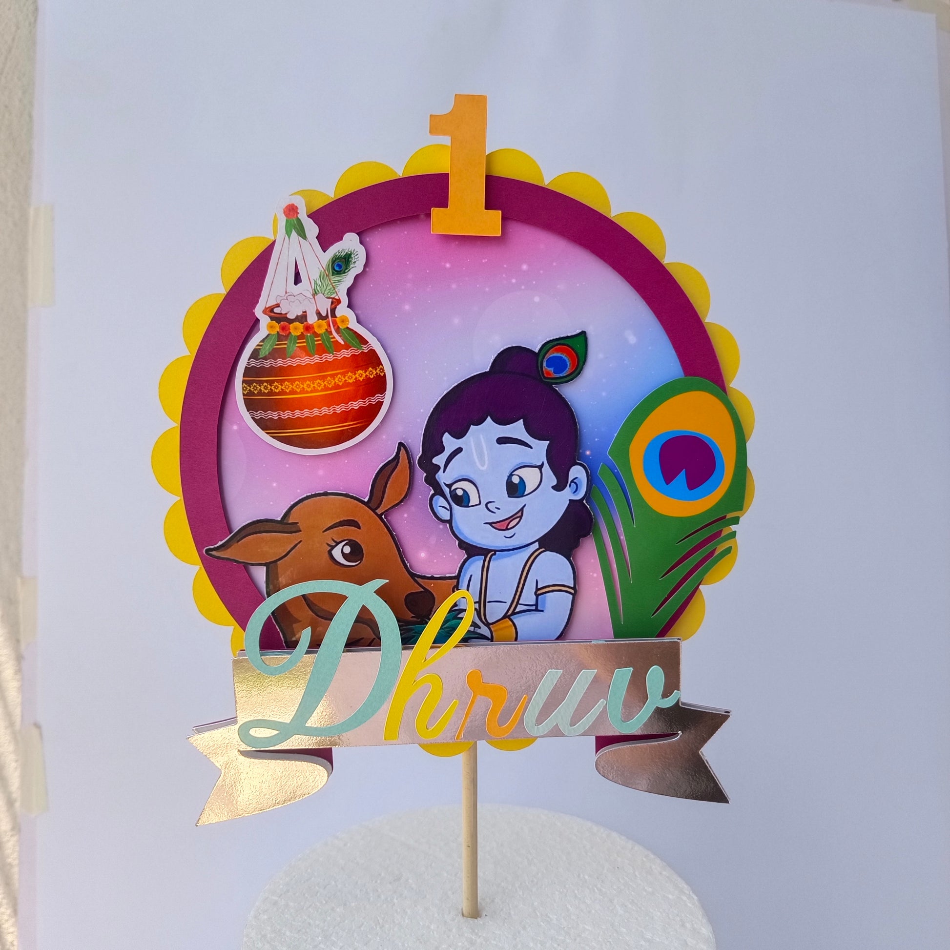 Krishna Cake Topper - Custom Name & Age - Handcrafted Party Decoration