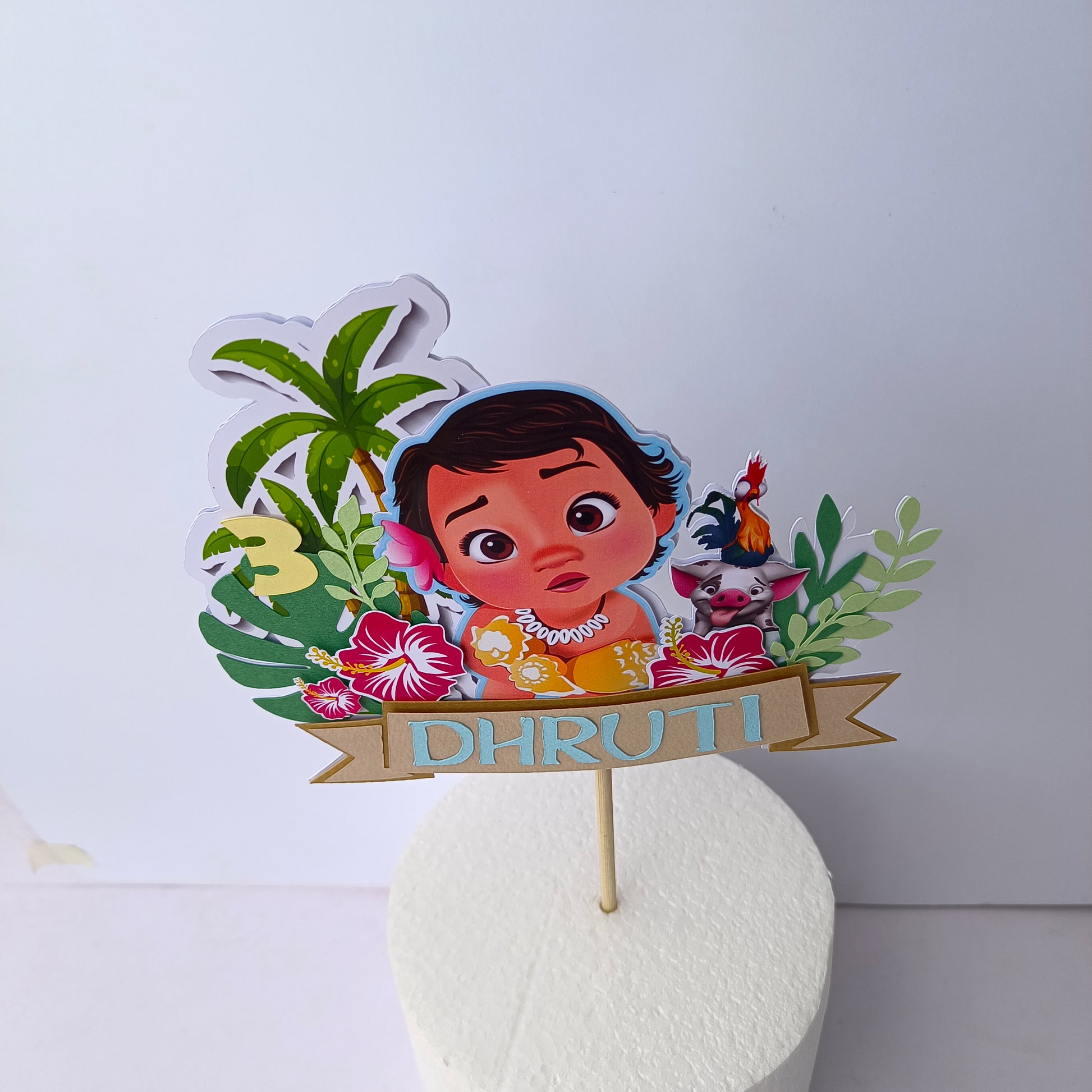 Transform your cake into an island masterpiece with this stunning Moana topper, personalized with your child's name and age. It's not just a cake topper – it's an adventure across the ocean!