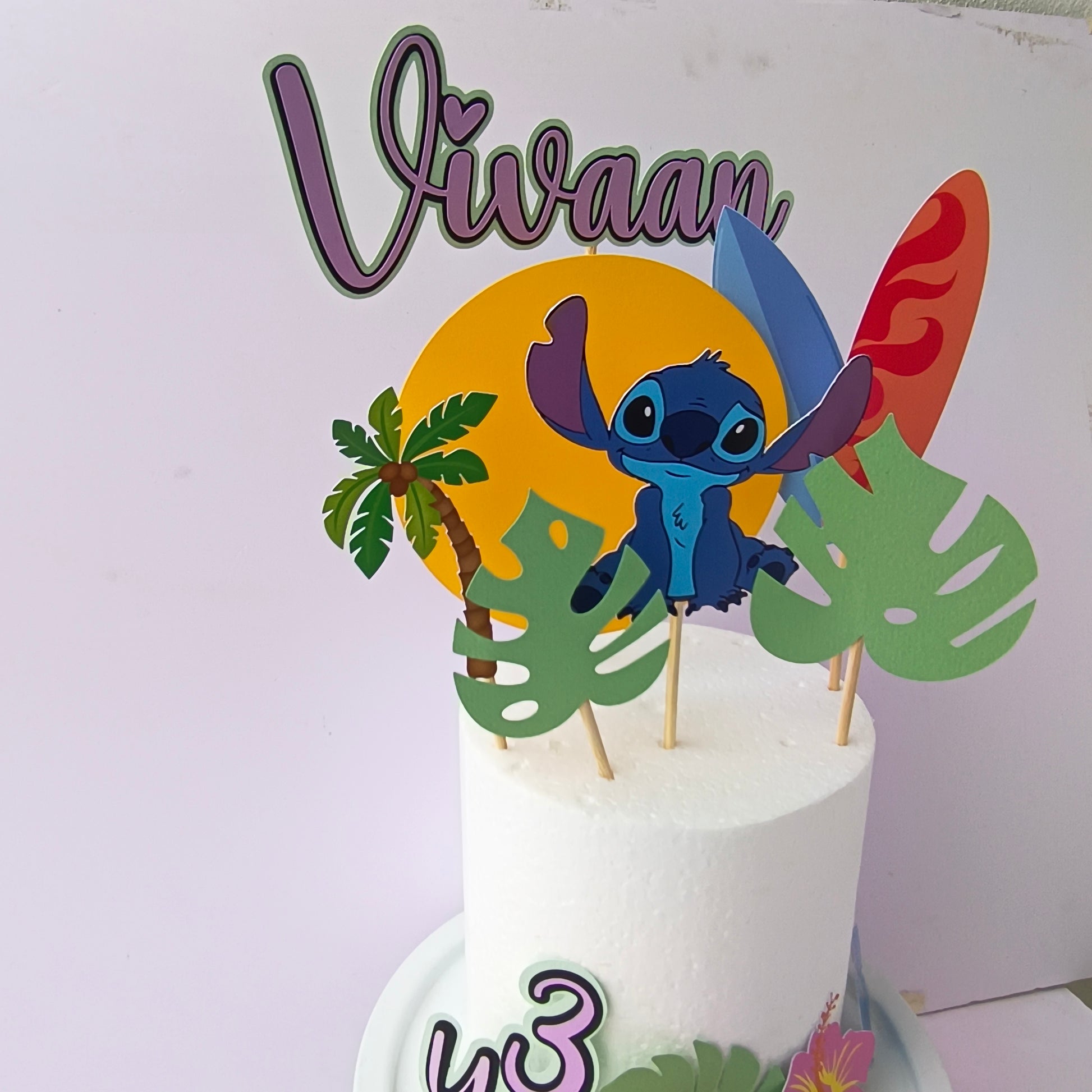 This handcrafted masterpiece features Stitch-inspired elements like tropical flowers, Hawaiian details, and playful touches that capture everyone's favorite blue alien. Perfect for Stitch-themed birthdays, Lilo & Stitch parties, Hawaiian celebrations, or any occasion for little ones who love this lovable character and his ohana spirit.