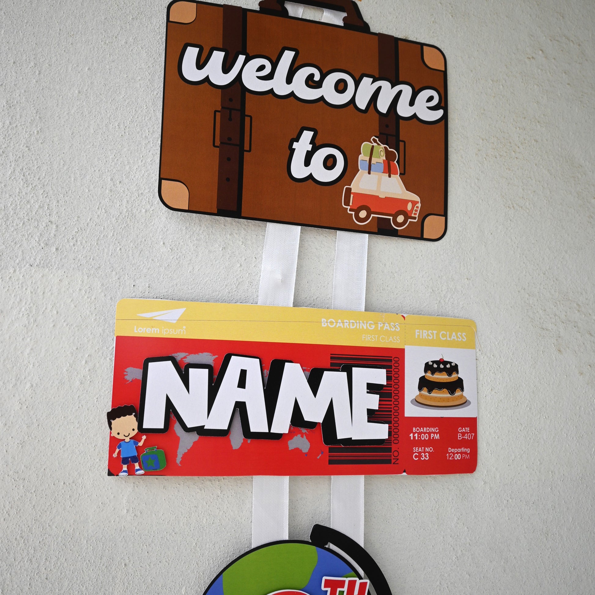 Transform your party entrance with this stunning travel welcome banner, personalized with your child's name and age. It's not just a banner – it's a passport to adventure!