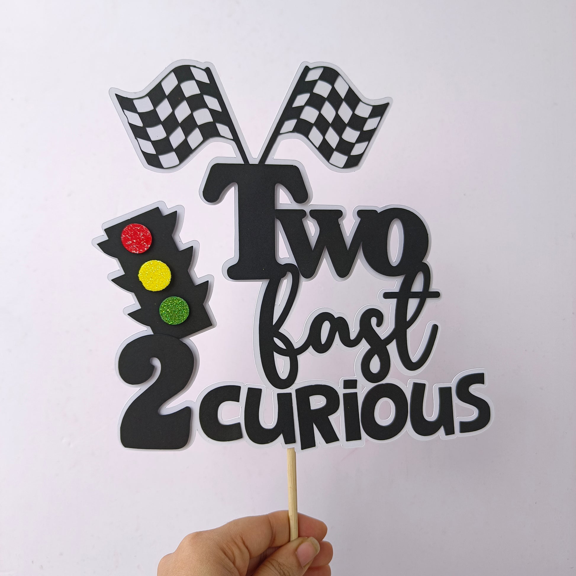 Two Fast 2 Curious Car Cake Topper - Handcrafted Party Decoration