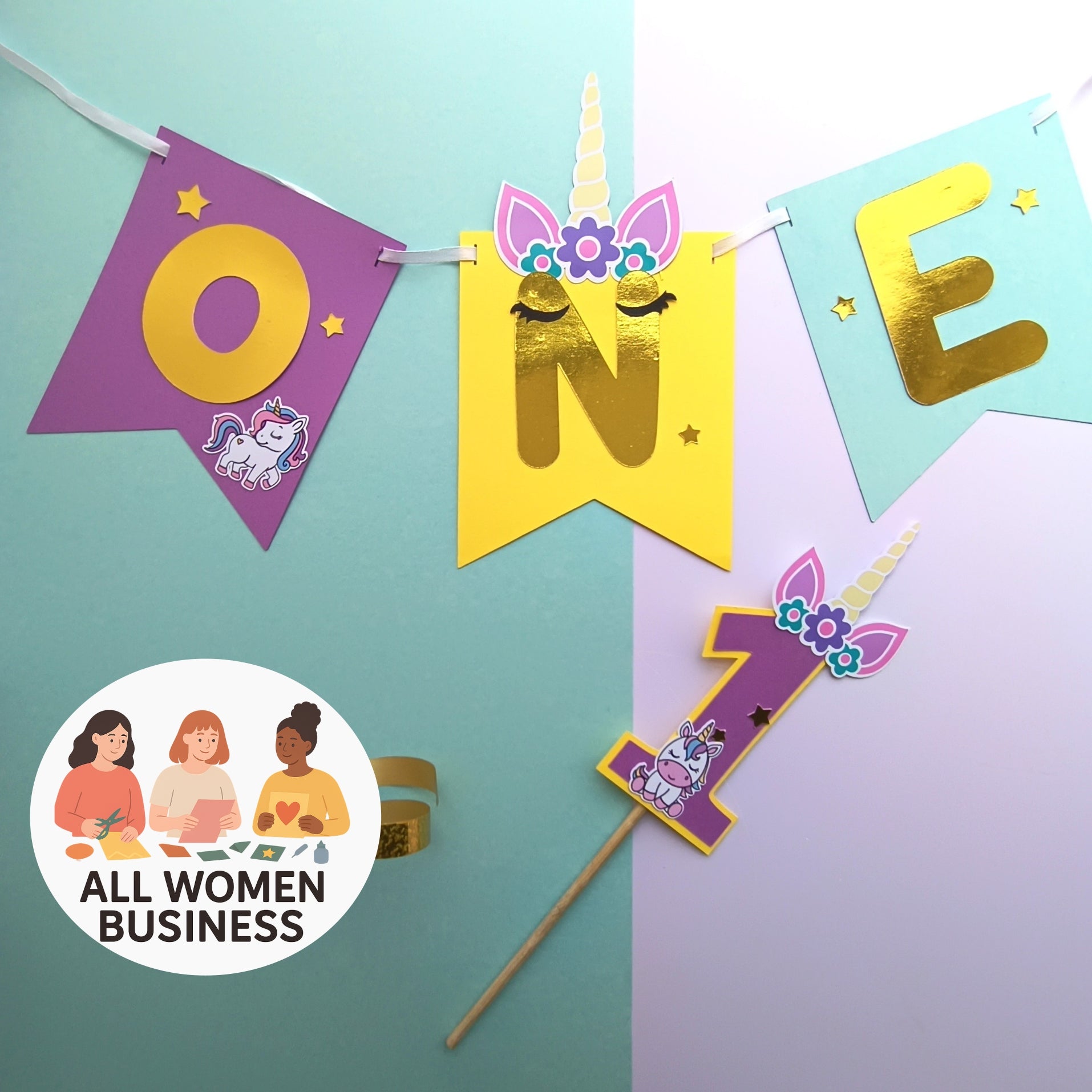 Unicorn High Chair Banner & Cake Topper Set - Handcrafted Party Decoration